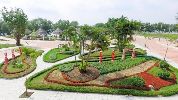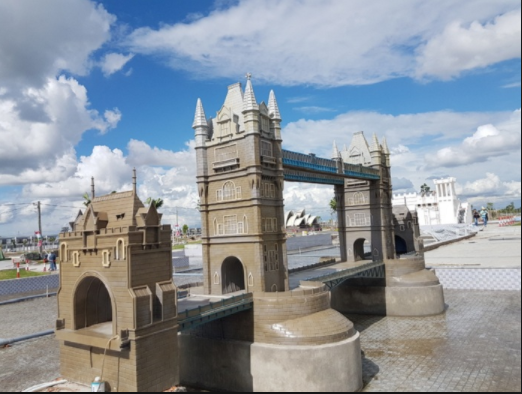Trong công viên khu dân cư Cát Tường Phú Sinh xuất hiện rất nhiều mô hình phỏng theo các công trình nổi tiếng thế giới.