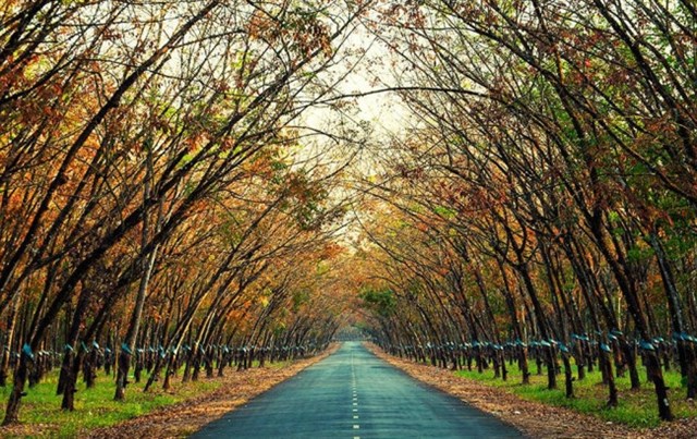 Đến Bình Phước, đi đâu bạn cũng sẽ nhìn thấy rừng cao su bạt ngàn, tuy nhiên ở Bù Đăng vẫn được xem là nơi trồng nhiều cao su hơn cả. Ở đây, cây cao su được trồng xen lẫn giữa các rừng cây non và già tạo nên cả một dải đất rộng bạt ngàn như một bức tranh sơn dầu với đủ các gam màu từ xanh non, xanh thẫm đến vàng, cam, đỏ.
