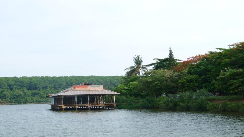 Khung cảnh quanh hồ còn khá hoang sơ và yên bình. Nơi đây rất phù hợp cho những chuyến dã ngoại, cắm trại, câu cá hay nghỉ dưỡng. Ngoài ra, đến đây du khách còn có cơ hội thưởng thức nhiều món đặc sản núi rừng của nhà hàng nằm ngay trong khuôn viên hồ.