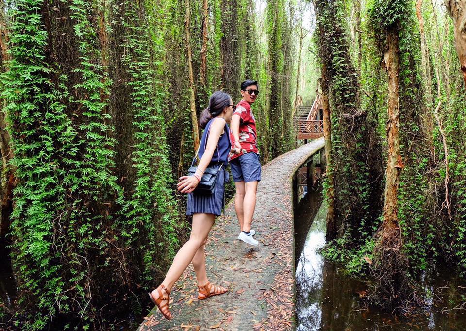 Nổi tiếng với đặc sản con đường 5km xuyên rừng tràm xanh mát – Làng nổi Tân Lập sở hữu không khí trong lành, dễ chịu cùng với thiên nhiên. Đây chắc chắn là điểm đến thú vị, dễ dàng đi về trong ngày xuất phát từ Sài Gòn.