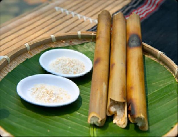 Do là nơi sinh sống của đồng bào các dân tộc nên cơm lam cũng được coi là một trong những đặc sản của nơi đây. Gạo được bỏ trong ống tre, nứa hoặc lồ ô. Gạo có thể là gạo tẻ hay gạo nếp, trộn với các loại đậu để tăng mùi vị. Ống tre được chọn để nấu không quá non cũng không quá già. Sau khi nướng chín cơm, để nguội rồi tước bớt lớp vỏ ống cho thật mỏng để vẫn giữ được lớp “áo” tre. Khi dùng, bạn chỉ cần cắt thành những khúc nhỏ, mùi vị sẽ thêm ngon nếu ăn cùng muối lạc, muối vừng. Cơm lam có vị ngọt tự nhiên của gạo, quyện với mùi thơm của tre nứa.