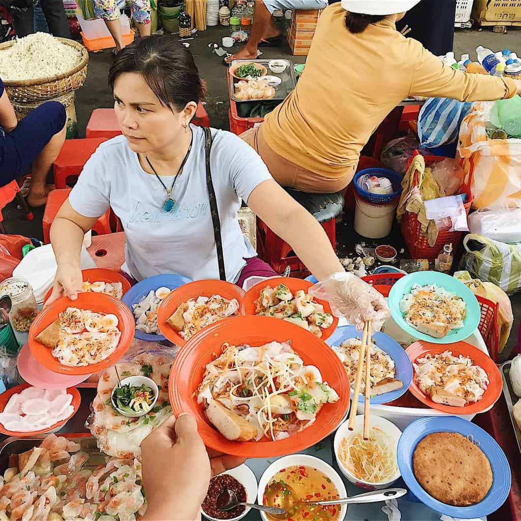 Khi đi chợ Cồn, ngoài chuẩn bị túi tiền lỉnh khỉnh thì một chiếc bụng đói cũng cần thiết nếu bạn không muốn tiếc nuối vì chưa thể ăn hết món ăn Đà Nẵng trong khu chợ trứ danh. Từ bánh bèo, bánh bột lọc, bánh nậm, bánh xèo,… cho đến bún mắm nêm, bún chả cá, bún thịt nướng,… sẽ khiến bạn “bối rối” vì không thể quyết định nên ăn món nào.