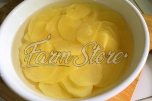 – Sắt lát mòng khoai tây rồi tiếp tục cho vào thau nước, nên cắt đến đâu cho vào thau nước sạch đến đó vì khoai tây rất nhanh bị thâm đen.