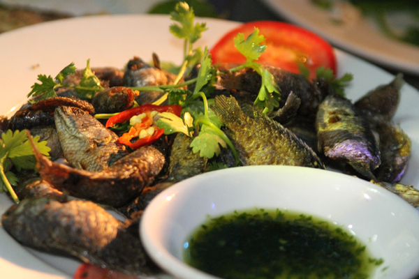 6. Cá rô đồng chiên giòn ăn kèm nước mắm ngò rí