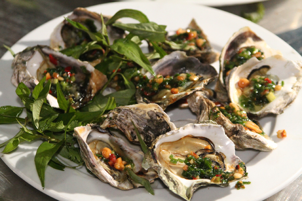 Nếu như muốn ăn hải sản, hàu nướng mỡ hành là món ăn tương đối lạ miệng mà bạn nên thử. Những con hàu chỉ bé bằng hai ngón tay người lớn, nhưng đầy hấp dẫn với hương thơm nức của mỡ hành quyện trong thịt hàu căng đầy, thơm ngọt ngon miệng.