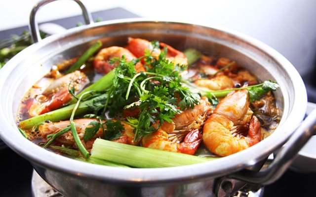 Với nguyên liệu chính là tôm được nấu cùng với nước dùng từ thịt ngọt thanh, đem đến một hương vị khó quên cho bất cứ ai từng thử qua. Bạn có thể ăn kèm lẩu tôm với bún và các loại rau .